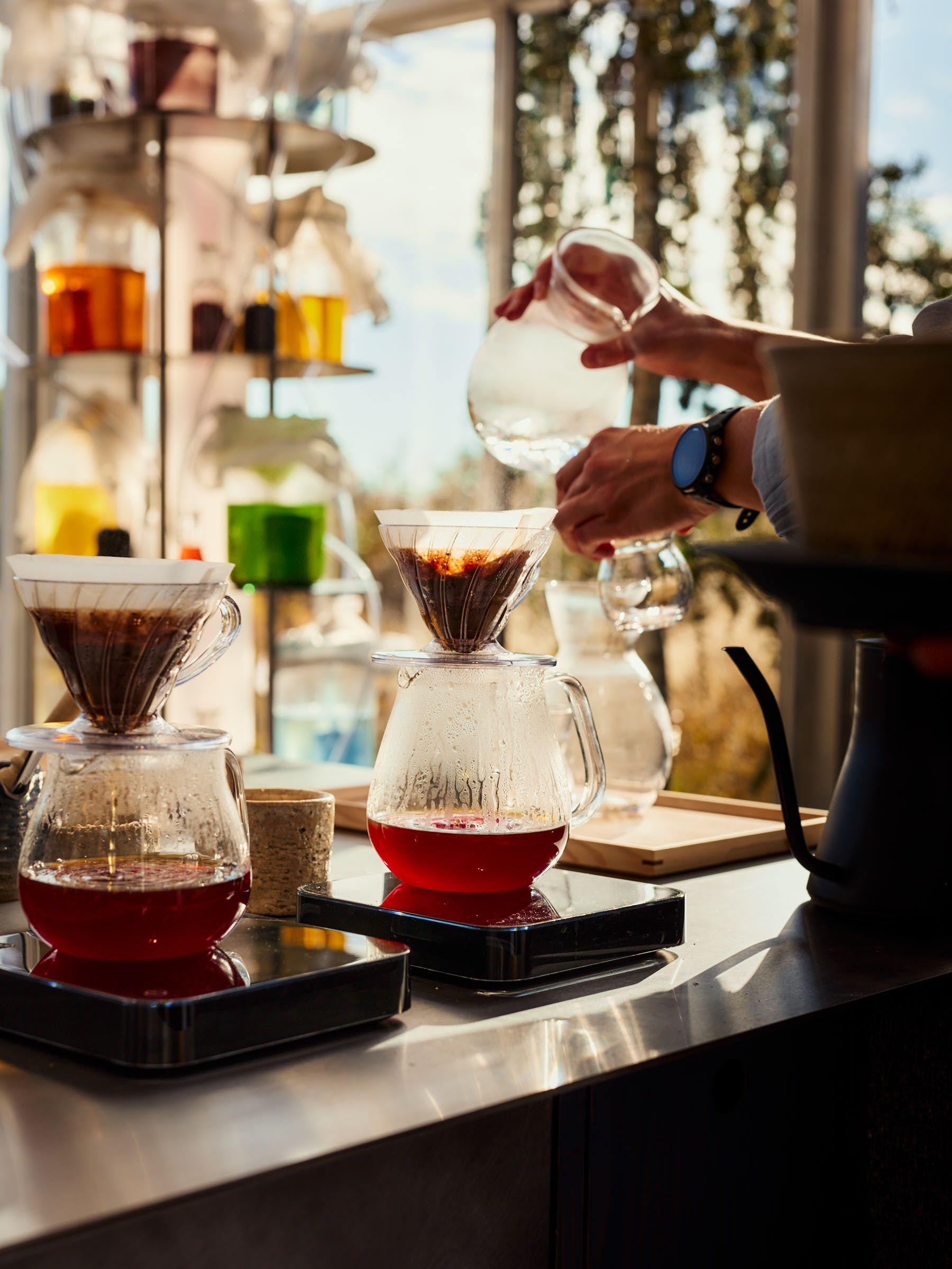 From the solid granite centerpiece coffee station to the extra-long display table adorned with bespoke glass jars - crafted at the renowned Danish workshop Holmegaard - every element is brought to life through an abundance of greenery and vibrant details that embody innovation.