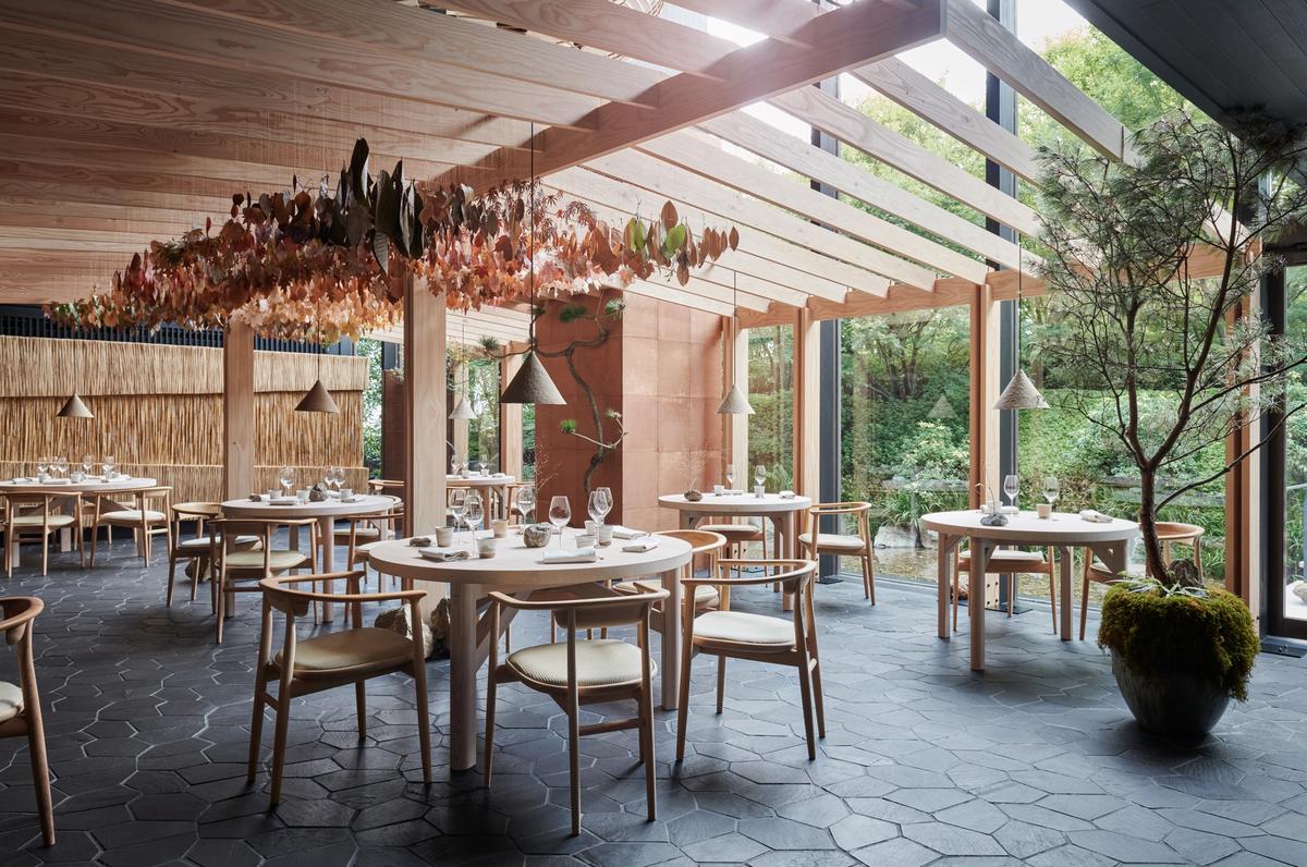 The 250 m2 restaurant space at Ace Hotel Kyoto has been revived again by OEO Studio for Noma, taking on a new direction and embracing the magical autumn of Kyoto and Japan, reminiscent of a forest floor blanketed in golden, burnt, and reddish leaves – relics of the woods.