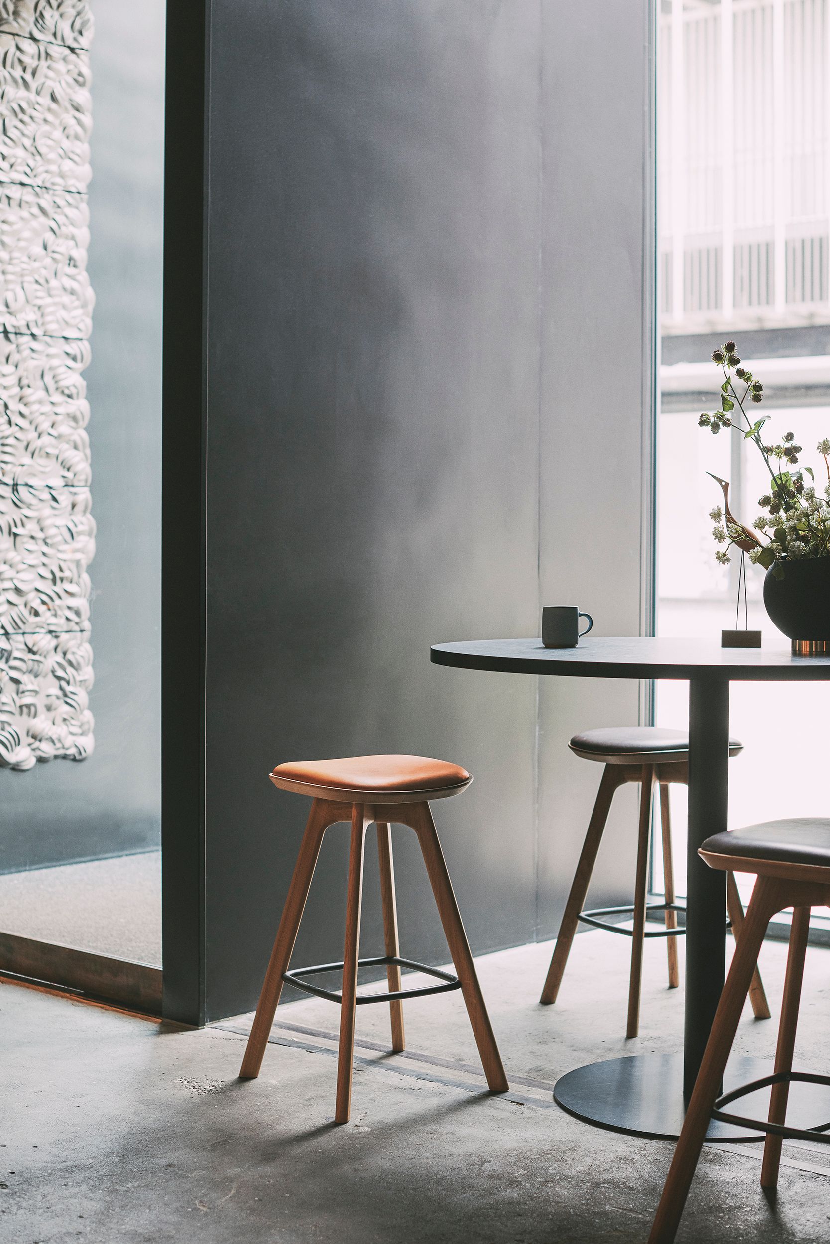 The simple design construction and look of the Pauline Bar Stool has been achieved by combining thoughtful design with prime craftsmanship. The barstool features some of the signature details found in OEO Studio’s first two designs for Brdr. Krüger, including the characteristic bone detail observed in the Ferdinand Lounge Chair and the front chair legs of the Theodor chair, yet Pauline maintains her own subtle personality. The light and restrained look as well as the functionality of the stool make it equally suitable to both domestic and hospitality use, from the home kitchen to restaurants and hotel lobbies where quality is imperative.