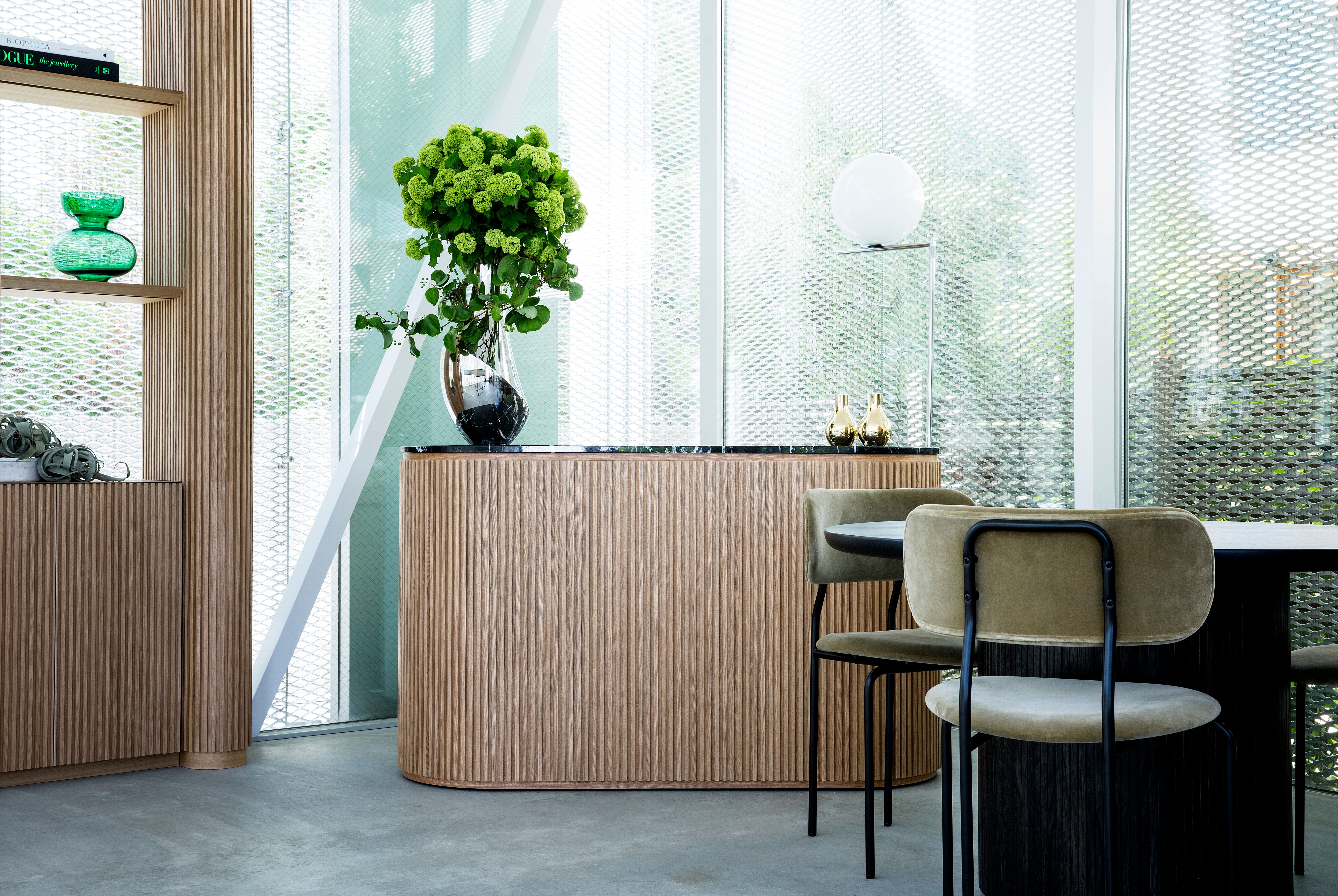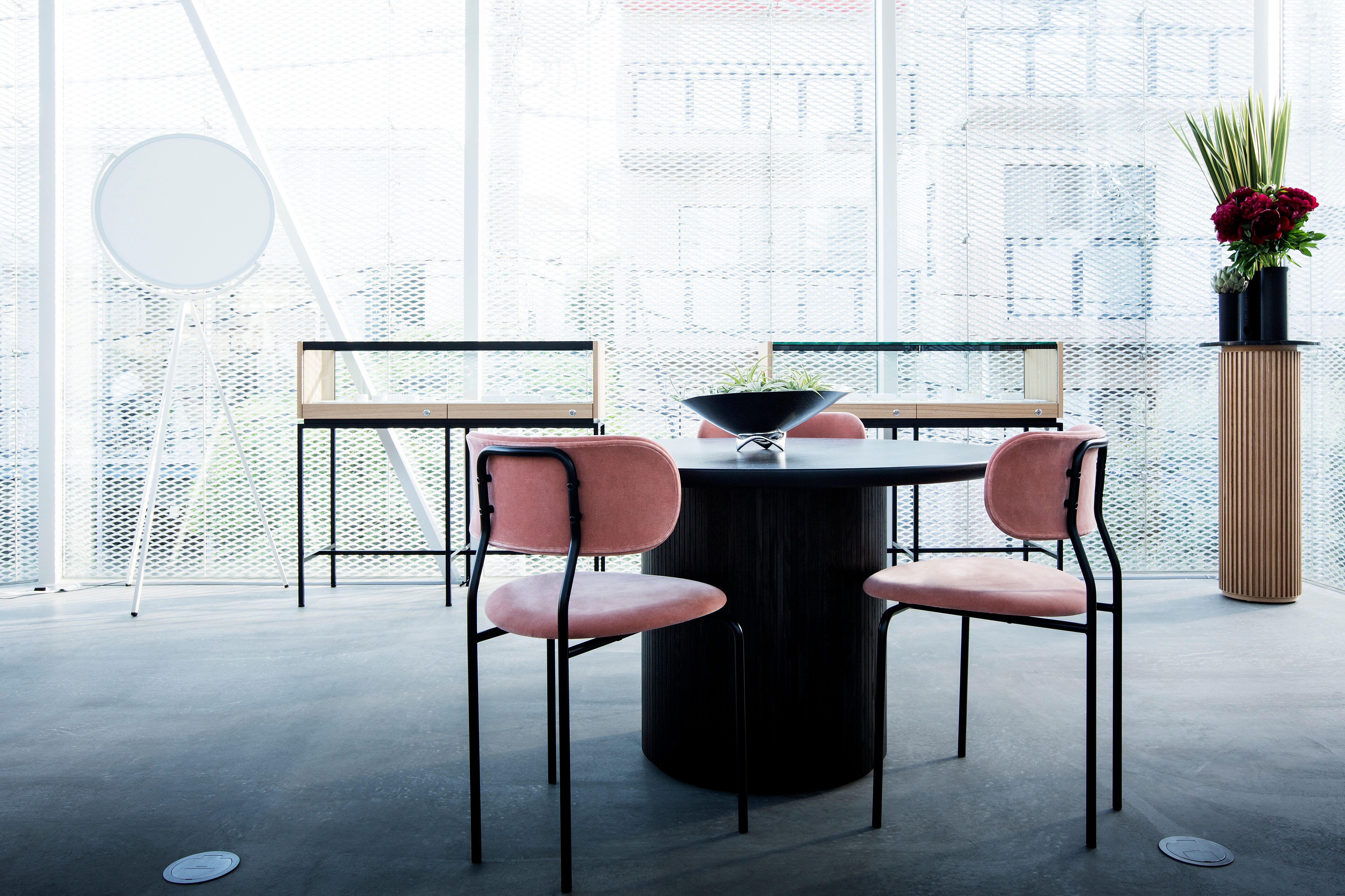 OEO Studio has taken inspiration from the artistic floral universe of Bergmann and created a spatial experience that reflects an air of lightness and Nordic sophistication. The interiors feature a refined blend of high-quality furnishing and lighting as well as bespoke interior solutions where maximalism meets minimalism in inspiring contrasts, from solid and heavy furniture pieces to more soft and light structures.