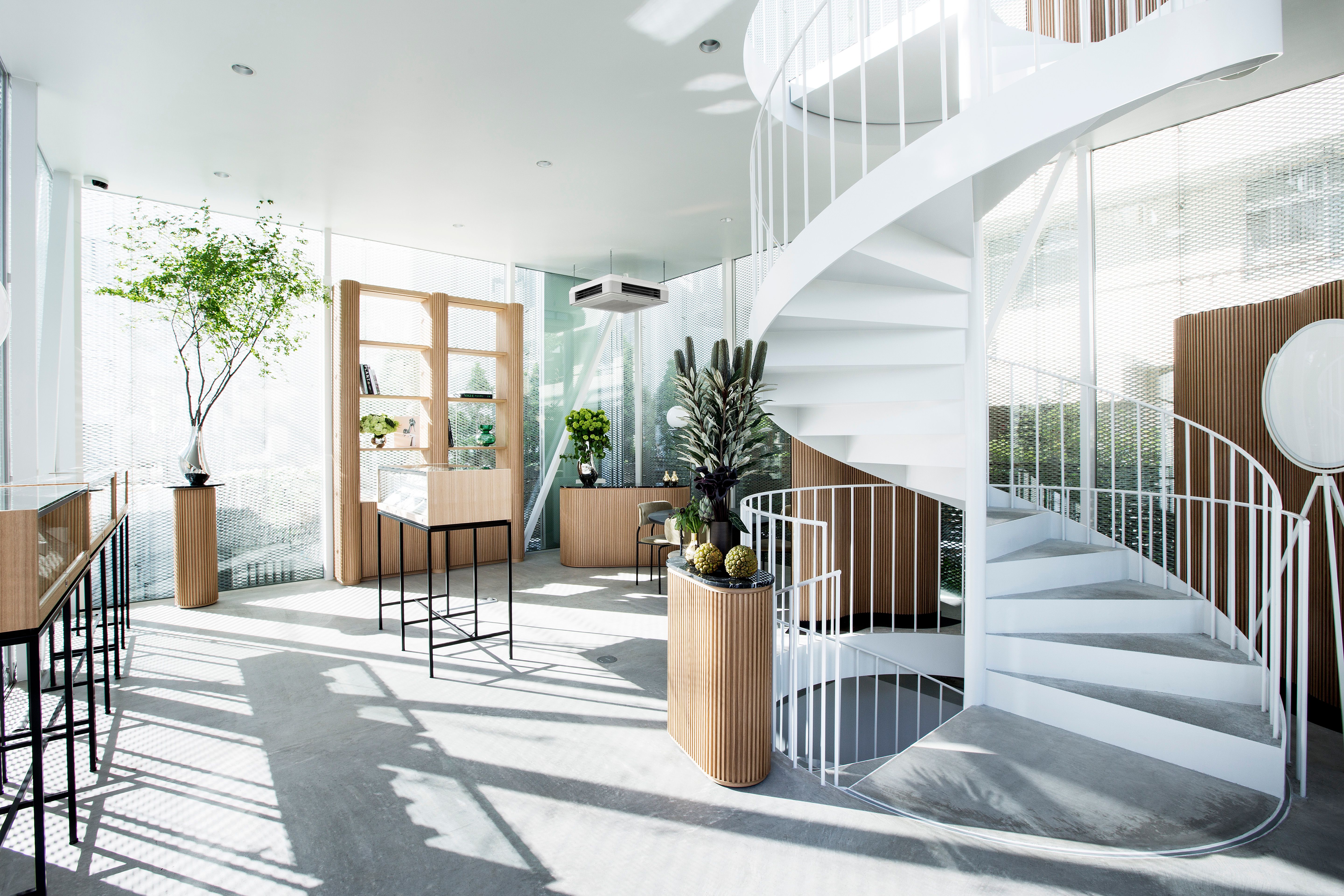 Located in a distinctive building designed by Japanese architects SANAA, OEO Studio has completed the interiors of a flagship store in Tokyo for the fine jewellery brand of Danish floral designer Nicolai Bergmann.